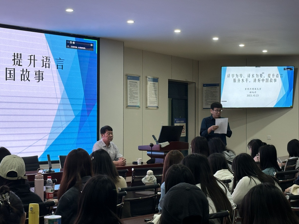 2023年10月23日晚,应新葡的京集团8814邀请,吉林外国语大学翻译研究院院长谢旭升教授在我院郫都校区学术报告厅开展主题为:“译学为导、译术为要,讲好中国故事”的讲座。