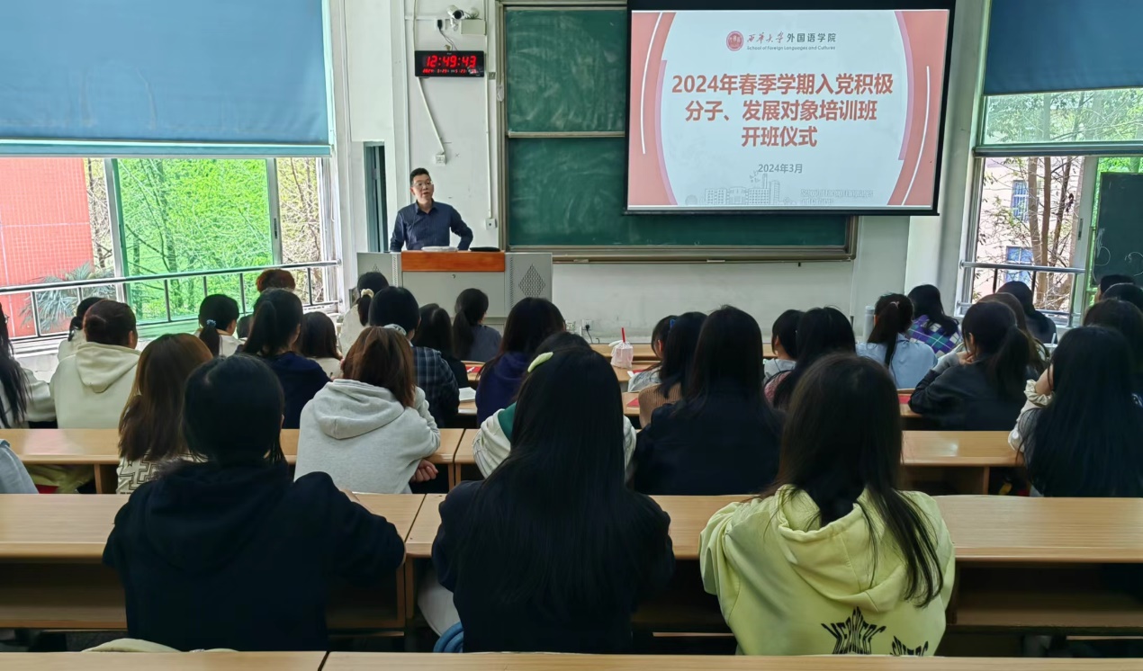 2024年3月29日,新葡的京集团8814在郫都校区4B301教室举行2024年春季学期入党积极分子、发展对象培训班开班仪式。仪式由辅导员杨磊老师主持,学院党委副书记万志昂教授作开班讲话。