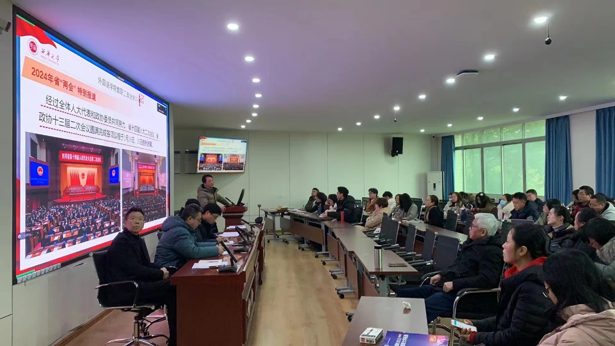 本次大会由李国宏院长主持。李院长首先向全体教职工致以新年及新学期的诚挚祝福,并对新入职的石兴老师进行了介绍和热烈欢迎。随后,李学芹副院长介绍了审核性评估和MTI翻译硕士合格评估相关工作,为大家带来了最新的工作动态。叶林果副院长传达了近期科研和实验室相关工作的进展情况,为教职工们提供了重要的信息。万志昂副书记则针对现阶段应届生就业情况和形势进行了深入介绍,并对接下来的就业工作进行了精准部署。此外,李国宏院长还传达了新学期学校和学院的工作计划和动态,为大家描绘了一个充满希望和挑战的发展蓝图。最后,唐润华书记传达了近期学校党委有关工作安排,呼吁全体教职工团结一心,共同为学院事业的发展贡献力量。