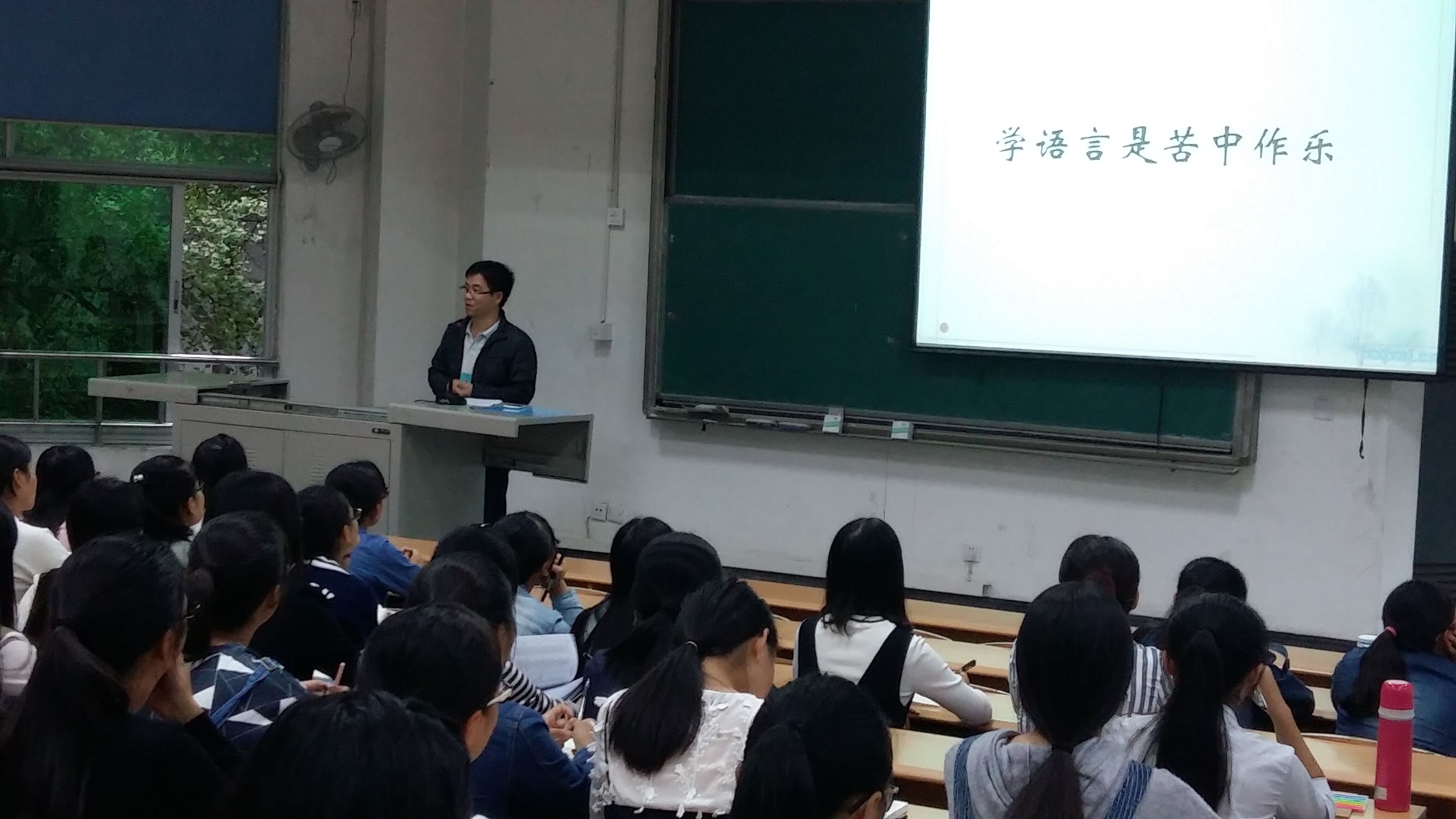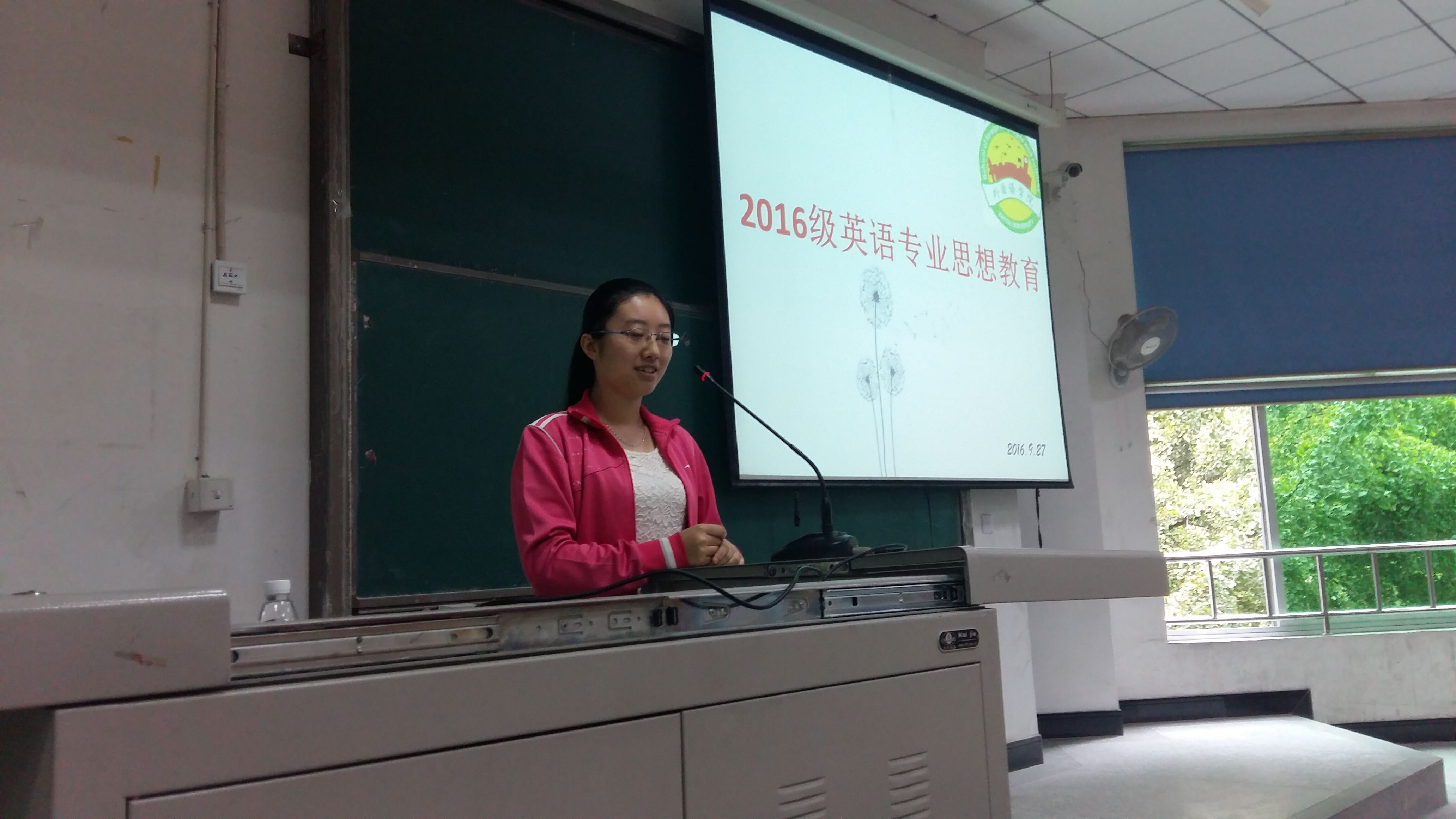 在9月27日上午举行的专业思想教育大会上,学院系主任李国宏老师、翻译专业许媛鸳老师、日语专业尹建英老师分别就翻译、英语、日语三个专业为新生们做了专业思想教育。李国宏对新生表达了欢迎及祝贺,告诫新生应该要有清醒的头脑,尽快适应大学生活,尽快投入到专业学习中去,同时增加自身修养和个人情操。许媛鸳表示希望同学们珍惜四年时间,积极参与学生活动、科研项目及比赛,最后希望新生能够加强对社会和世界的认知和了解。尹建英则希望同学可以规划好大学目标以及职业方向,抓住每一个能提升自己的机会,用知识武装自己。最后,优秀学姐学长代表上台向新生分享了自己的学习心得和经验感受。