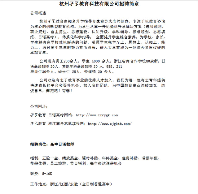 【日语专场招聘】杭州孑孓教育科技有限公司招聘