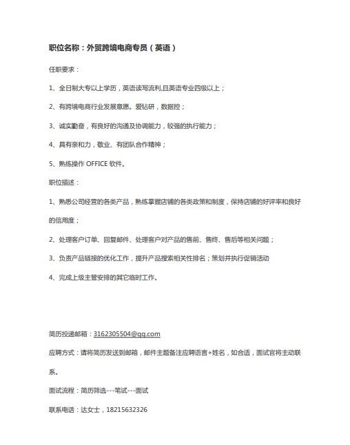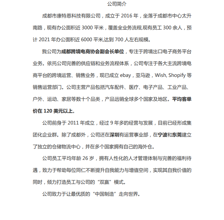 成都康特恩科技招聘外贸跨境电商专员(英语)