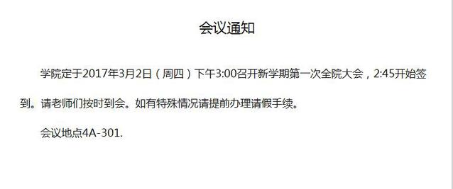 3月2日下午3:00召开全院大会通知