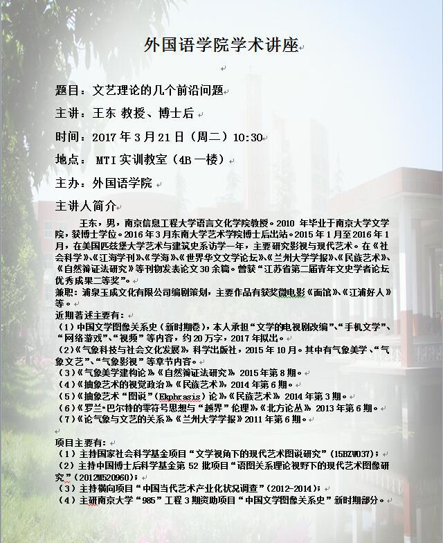 3月21日学术讲座公告