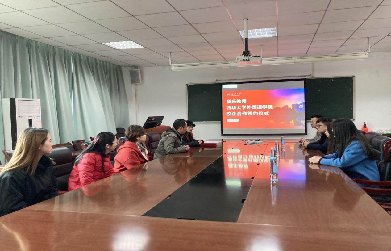 槿乐教育咨询有限公司总经理倪龙玉玺、黄柯老师、孙玉汝老师与新葡京官网党委副书记罗海、学工办主任曾渝理以及辅导员杨磊、彭陈丽、罗雨虹老师在学院会议室举行了此次签约仪式暨授牌仪式。