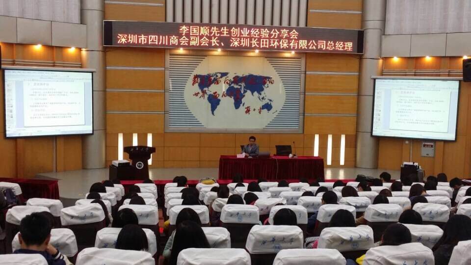 为切实做好大学生创新创业工作,鼓励大学生自主创业,新葡的京集团8814积极响应学校的号召,以学校创新创业宣传月为契机,开展创业宣传和经验分享活动。11月14日下午三点,深圳市四川商会副会长、深圳长田环保有限公司总经理李国顺先生在四教报告厅为同学们做了一场主题为“创新创业经验分享”的报告会。新葡的京集团8814党委副书记曾国勇、学院学工办主任王慧老师和2014级辅导员王丹丹老师参加了此次分享会。