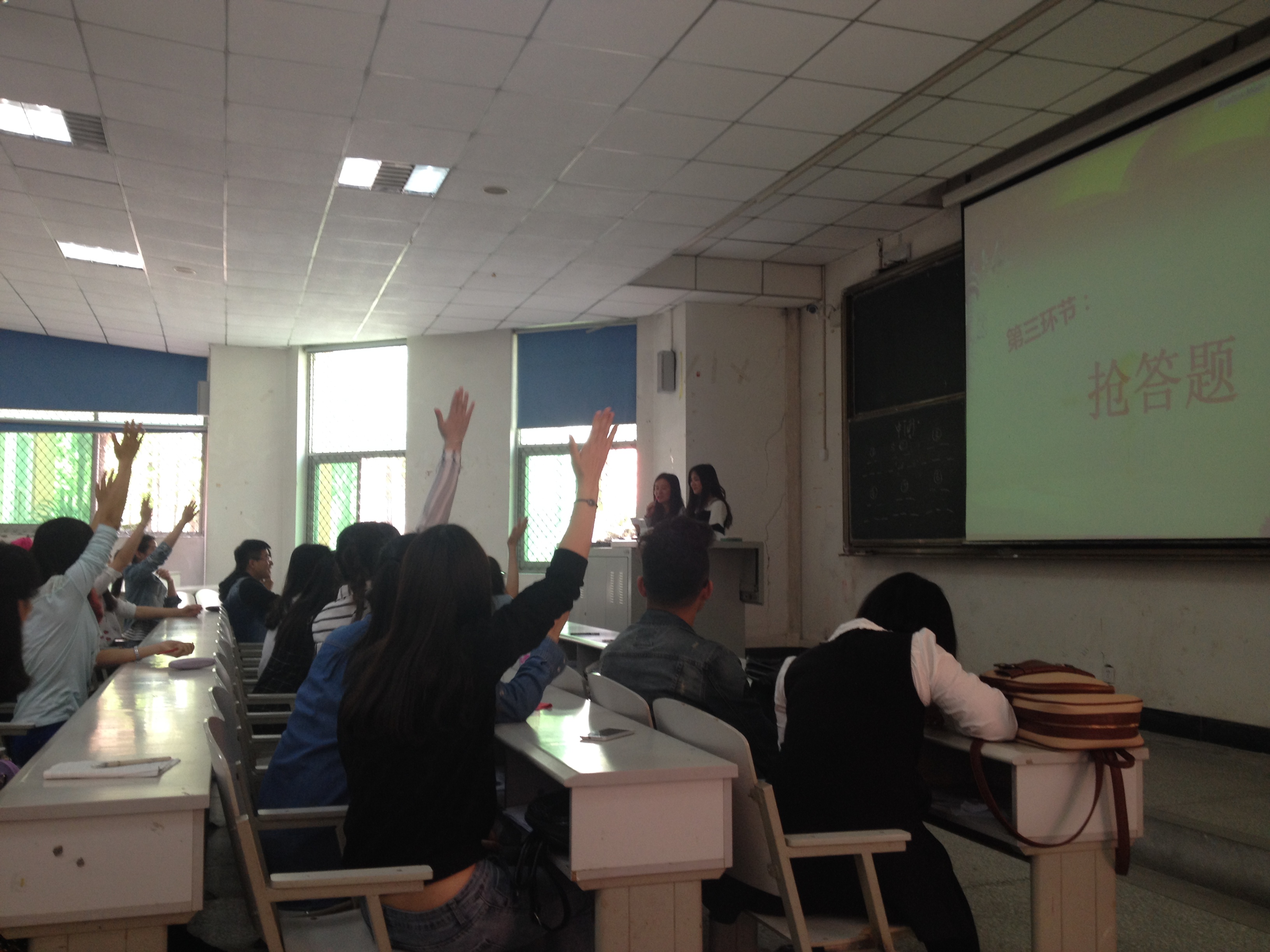 这是新葡的京集团8814学生党支部于4月3日中午12:20在4A-104教室举办的“十八大精神及党章知识竞赛”组织生活的一段问答。此次组织生活旨在引导和教育学生党员“知党史、懂国情、悉民生”,积极了解和学习党和国家的相关政策方针,全面理解党的精神,提升自身政治修养,并学以致用,努力作好学生党员表率先锋作用。学院2012级、2013级所有学生党员参加了竞赛,各年级入党积极分子到场观摩学习。学院学生党总支书记王慧、2012级日语专业辅导员梁正科、2014级辅导员王丹丹到场观看了比赛。