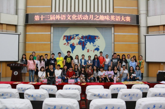 5月9日晚7点,由新葡京官网团委学生会权益部及易班工作站联合举办的第十三届外语文化活动月之趣味英语大赛决赛在四教报告厅顺利进行。本次决赛由2015级辅导员梁正科、英语系老师张诗、翻译硕士研究生许淼担任评委。共有八个小组进入决赛进行角逐。