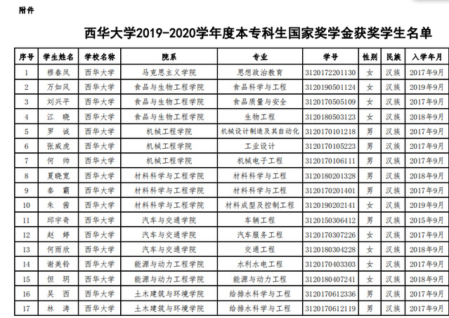 关于公布新葡的京集团88142019-2020学年度本专科生国家奖学金获奖学生名单的通知