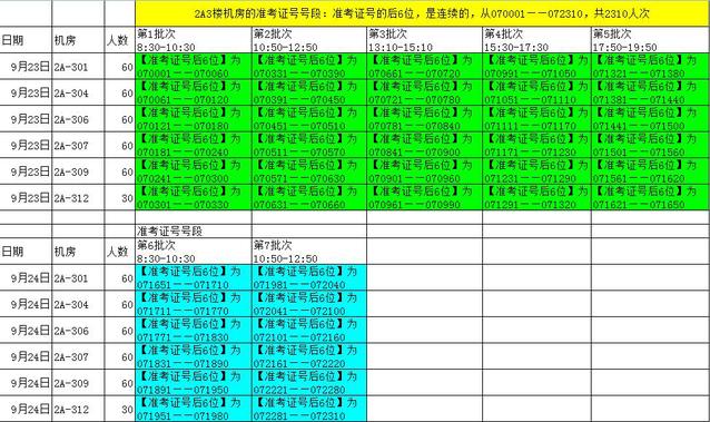 第49次全国计算机等级考试2A三楼考生批次、机房安排