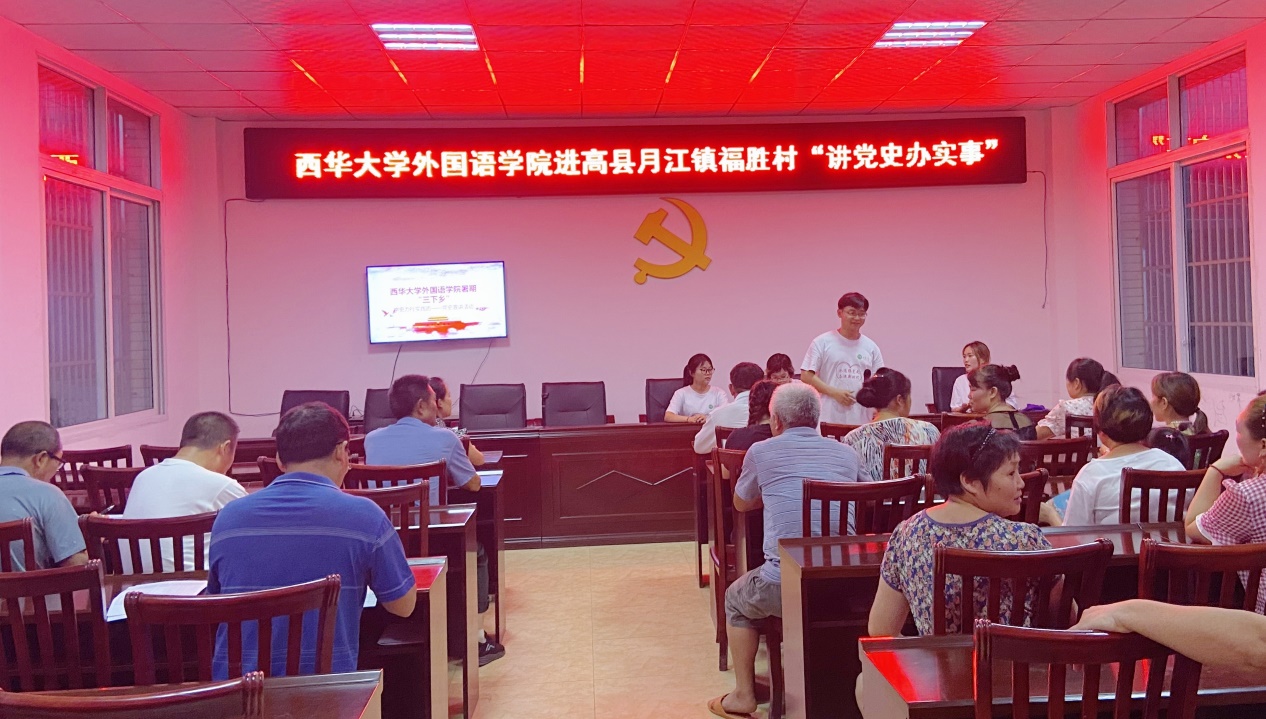 “学史力行”实践团于7月7日~7月11日深入宜宾高县月江镇贫困村,因地制宜开展小规模、互动式、接地气的党史宣讲活动,同时深入9村50余户人家,慰问空巢老人和留守儿童,开展“送书到家、送学上门”、“送点滴温暖”活动,并开展了“反诈骗”宣传志愿服务活动。团队在流米李园和红岩山等地参观乡村振兴示范点,通过考察“一村一品”,乡村共享经济,创意农业、特色文化产业等学习脱贫攻坚成果如何同乡村振兴有效衔接,在坝坝会中让更多群众了解了中国共产党的国家事业的来龙去脉,队员们也在宣讲过程中真正做到学史明理、学史增信、学史崇德、学史力行。