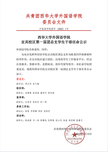 新葡的京集团8814宜宾校区第一届团总支学生干部任命公示