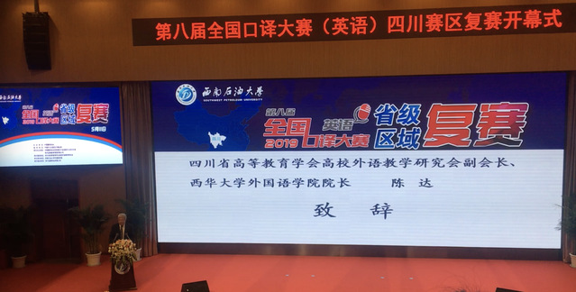 5月11日,第八届全国口译大赛(英语)四川赛区复赛在西南石油大学成都校区举行。全国口译大赛(英语)由中国翻译协会主办、中国外文局指导,是展现全国在校大学生英语口译应用能力的高水平赛事活动,具有较强的学术性、观赏性和挑战性。大赛旨在促进翻译学科建设和语言服务行业的繁荣发展,满足我国日益扩大的对外交流需求,培养高素质语言服务人才,提供翻译行业坚实的人才储备。
